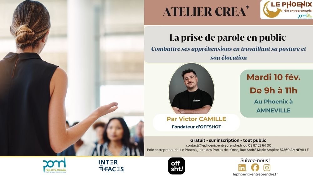 La CCPOM vous propose au Phoenix un atelier pratique pour gagner en aisance et en impact à l’oral, animé par Victor Camille, fondateur d’OFFSHOT.