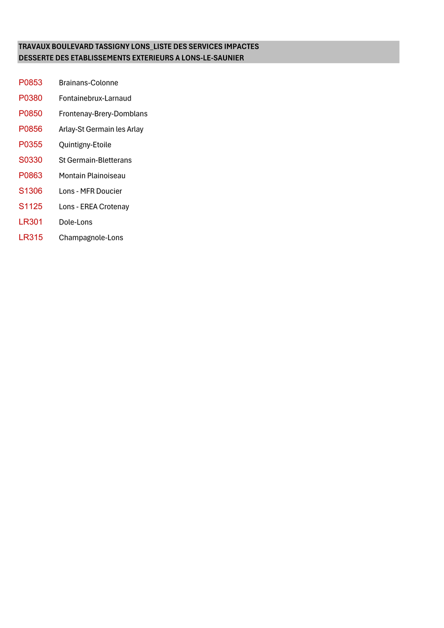Ces travaux auront un impact sur la circulation des transports scolaires ainsi que sur les lignes régulières desservant, dans un premier temps, les établissements scolaires de Lons-le-Saunier, puis ceux situés à l’extérieur de la ville.