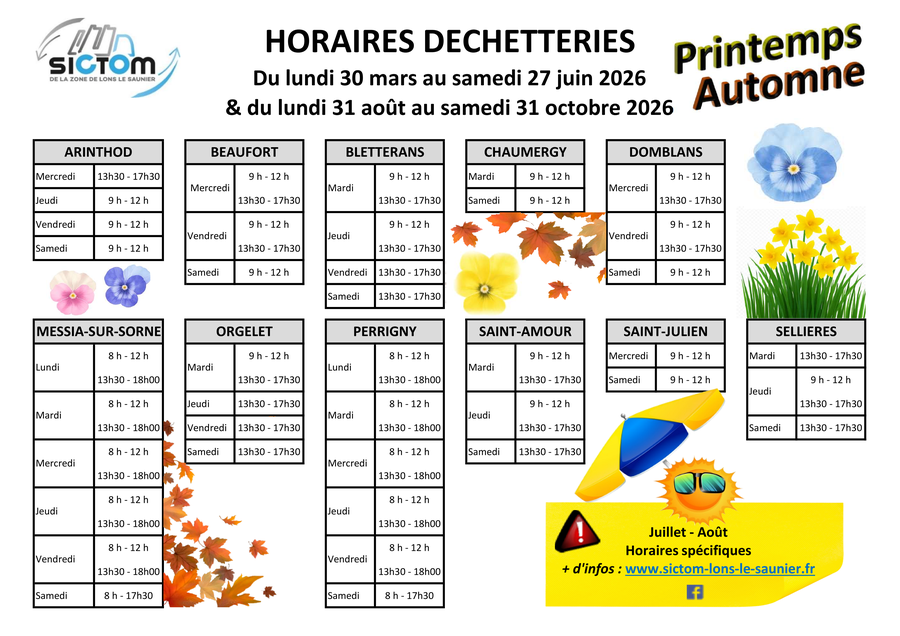 Retrouvez l’intégralité des horaires de nos 11 déchetteries sur l’affiche disponible en pièce jointe.