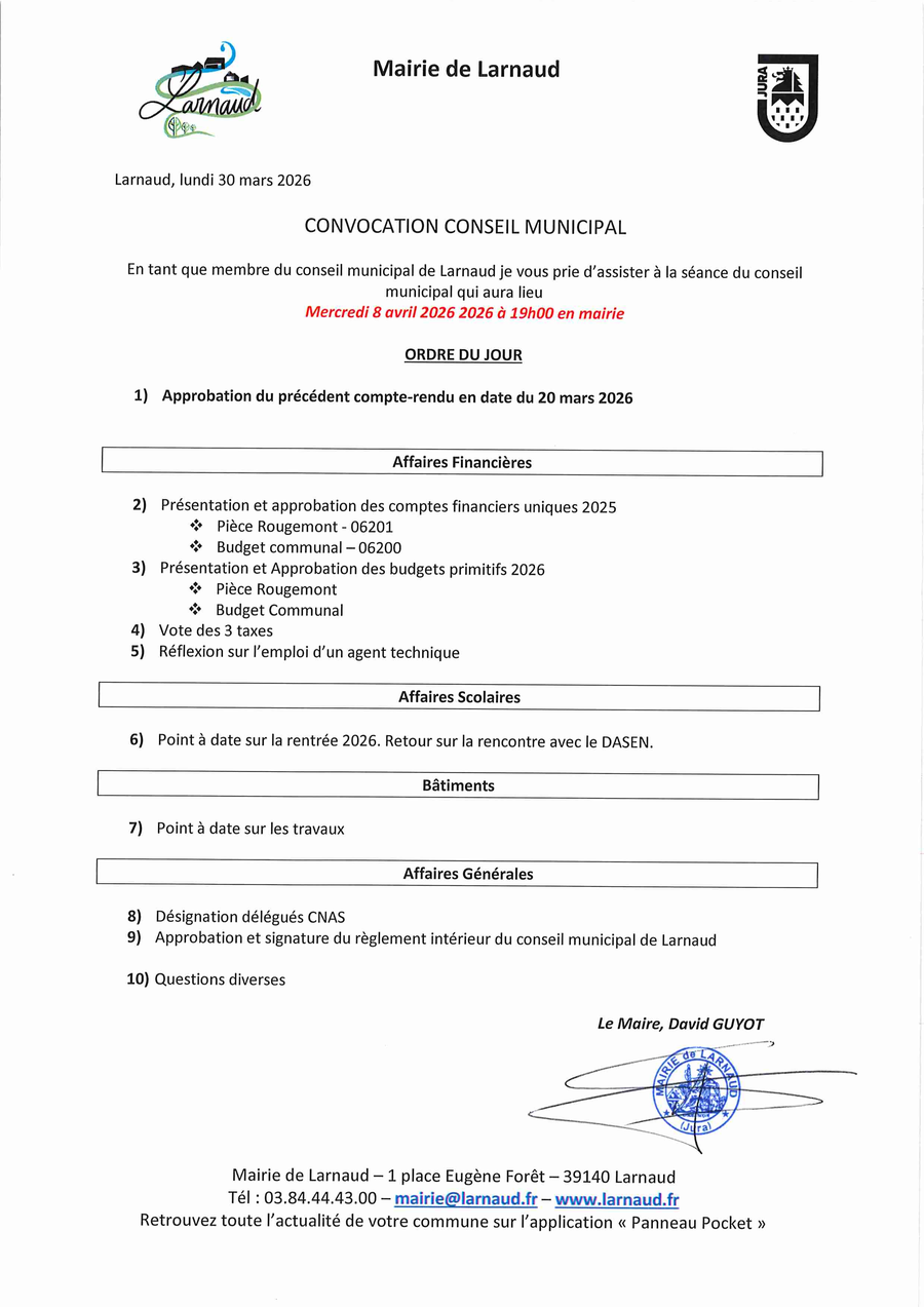 Convocation Prochain Conseil Municipal