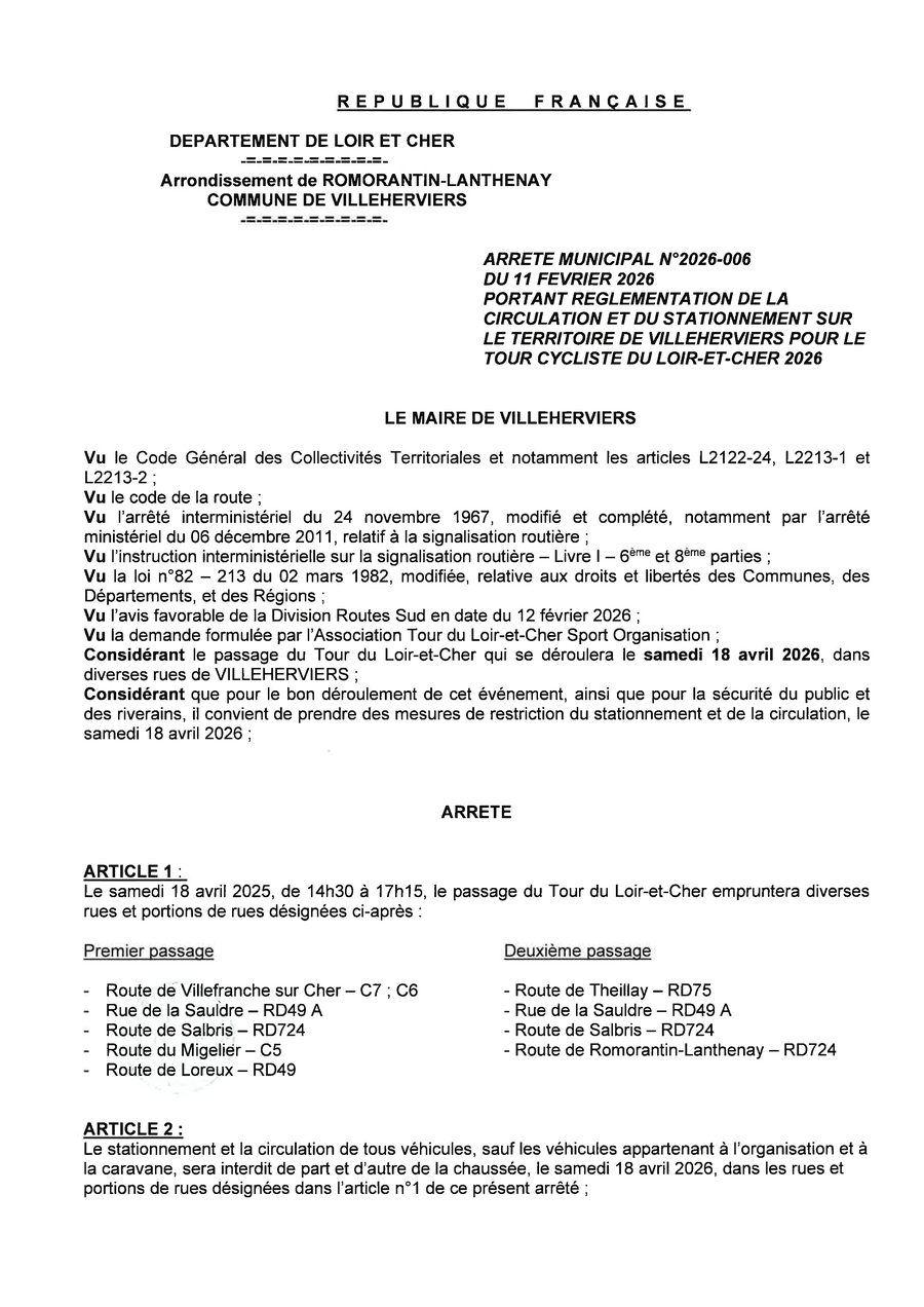 En raison du passage de la course cycliste, certaines voies sur la commune seront fermées à la circulation entre 14h30 et 17h15 (horaires approximatifs)