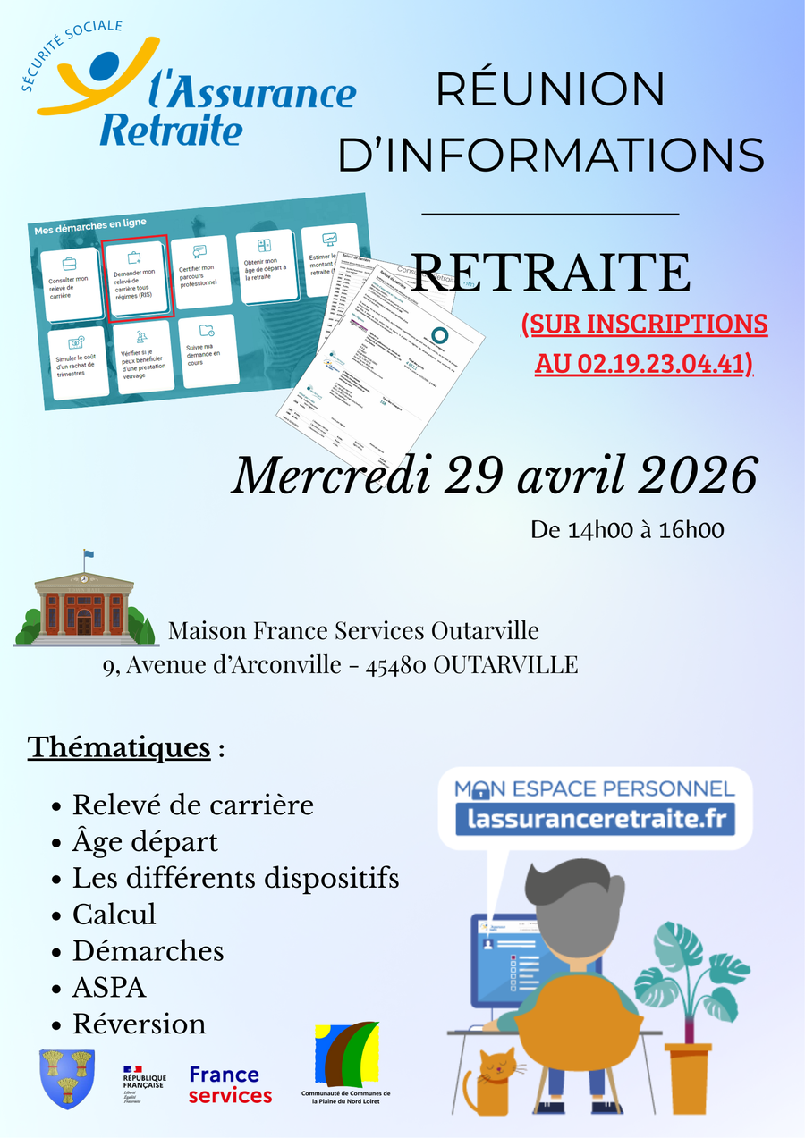La Maison France Services 🇨🇵 d'Outarville accueille un agent de l'Assurance Retraite 👴 pour une réunion ℹ️ d'informations.