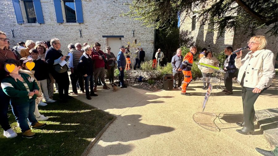 Madame le maire, entourée du Conseil municipal, a inauguré la Place du Saint en présence de nombreux Saint-Laurentais(es) venus partager ce moment chaleureux.