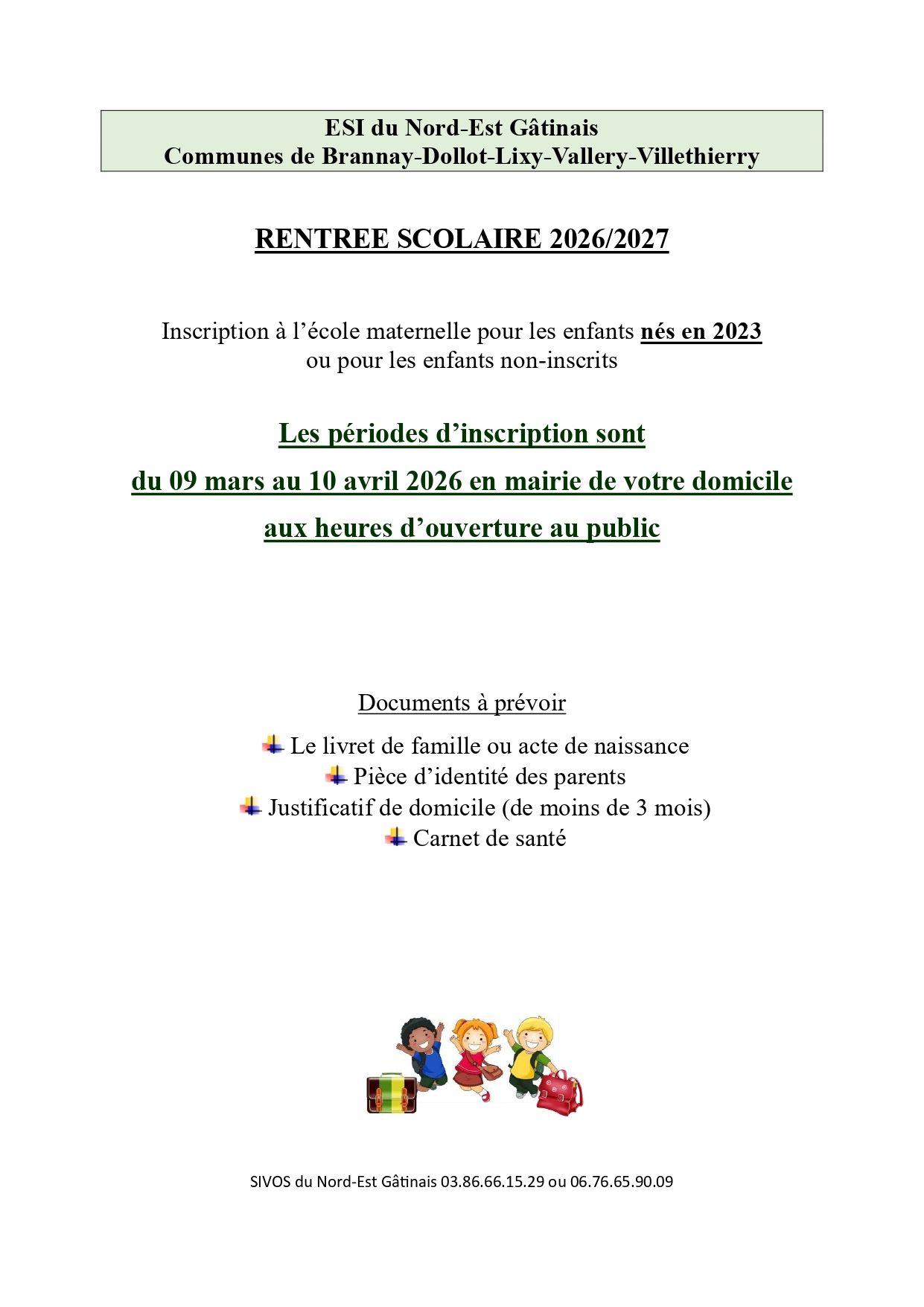 Inscriptions à l'école maternelle