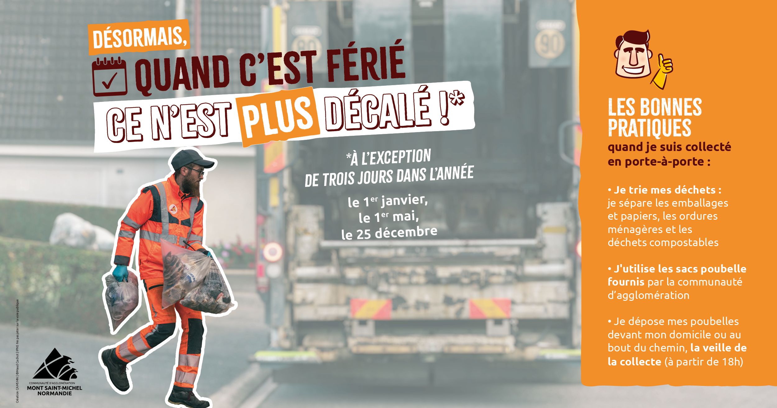 A partir du week-end de Pâques, les jours de collecte qui tombent un jour férié ne seront plus décalés à l'exception du :