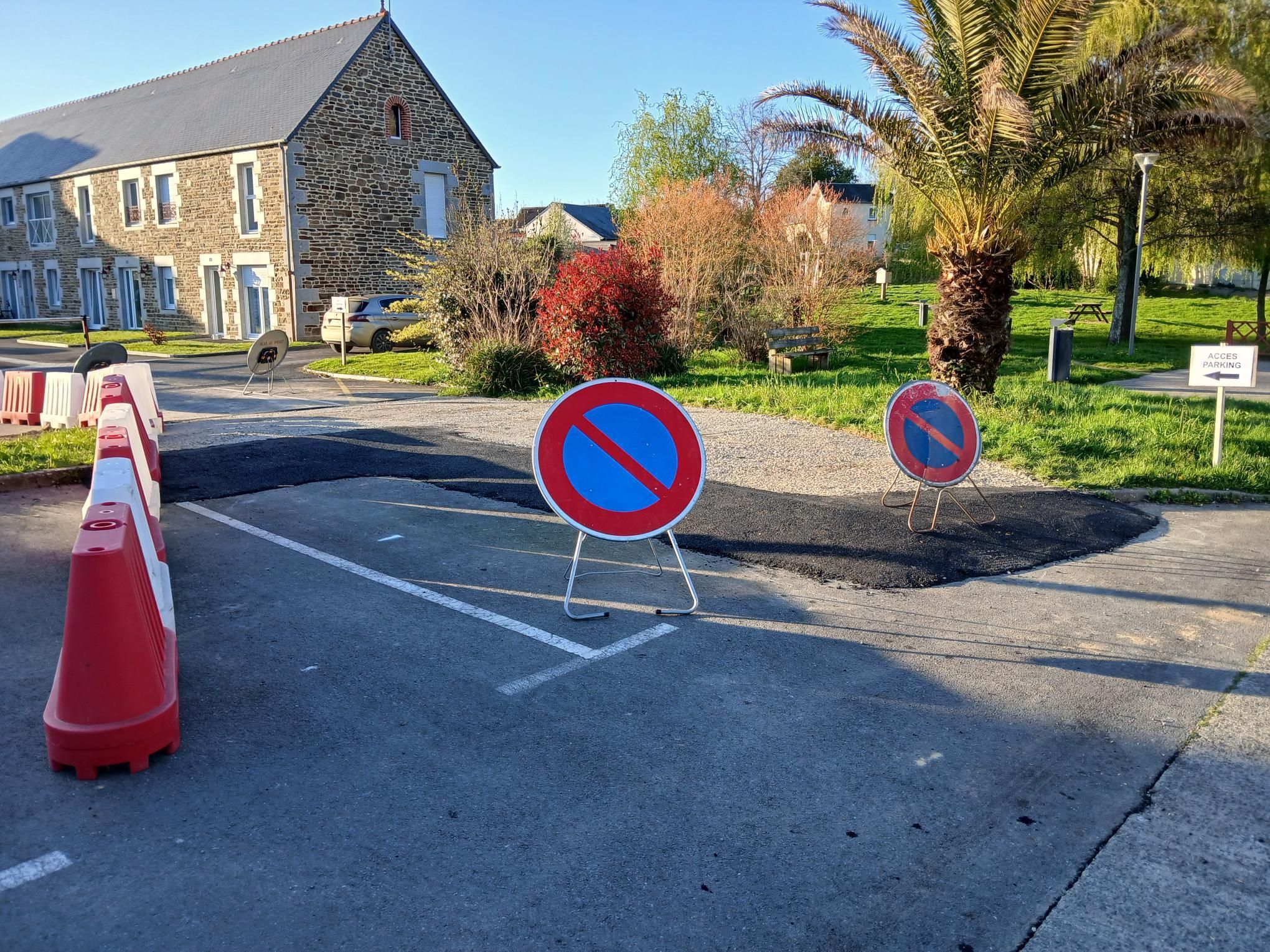 Afin de faciliter la circulation et le stationnement sur le parking situé devant la pharmacie, une ouverture a été aménagée.