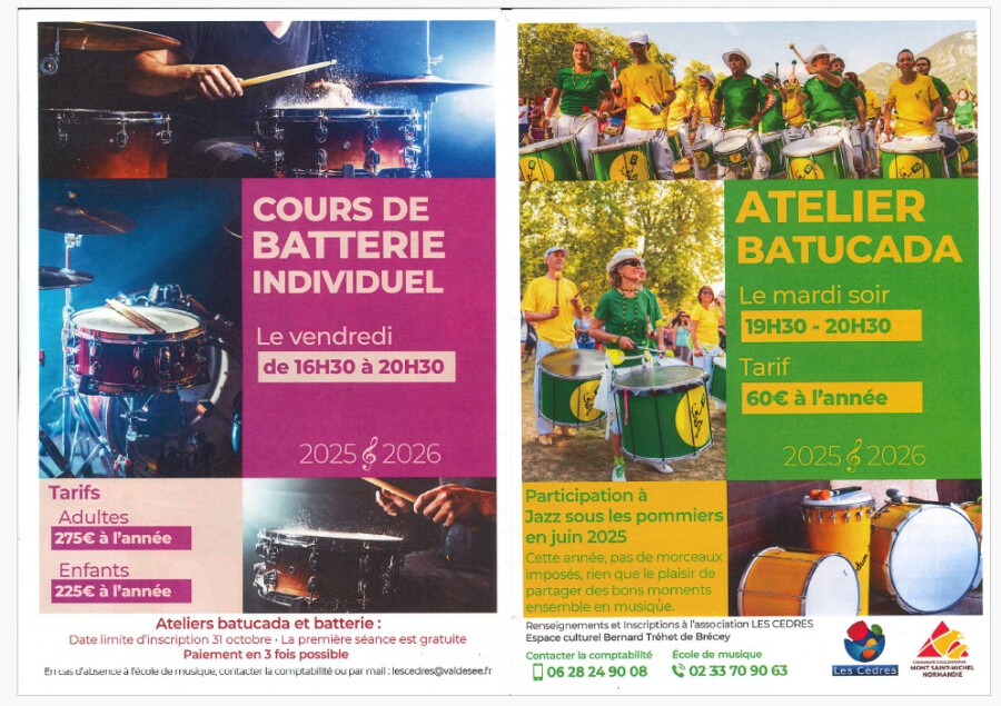 Les Cèdres organisent des cours de batucada et de batterie tous les mardis et vendredis à l'école de musique de Brécey.