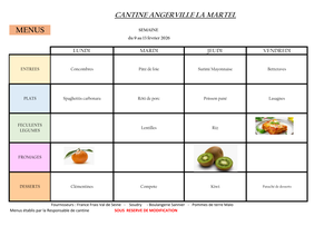 Menus à la cantine