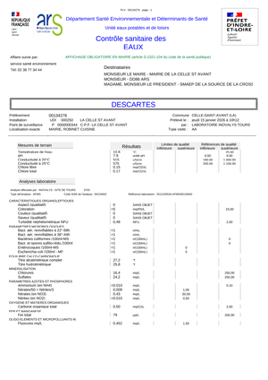 Contrôle sanitaire des eaux