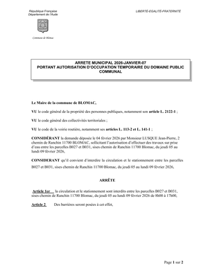 VEUILLEZ PRENDRE CONNAISSANCE DE L'ARRETE DU MAIRE CI-DESSOUS