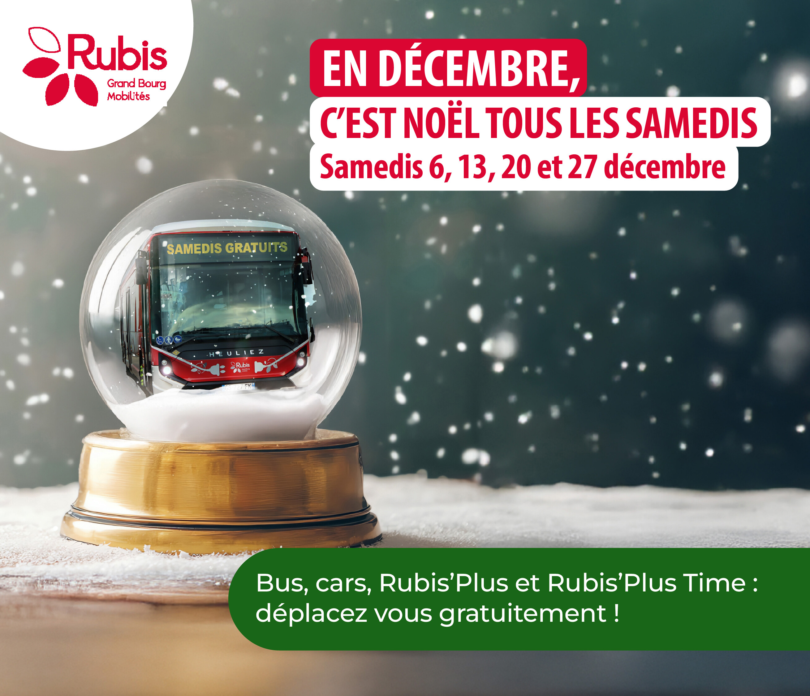 Tous les samedis du mois de décembre, Grand Bourg Agglomération, vous propose l’accès à tous les bus, les cars et au transport à la demande Rubis totalement gratuit .