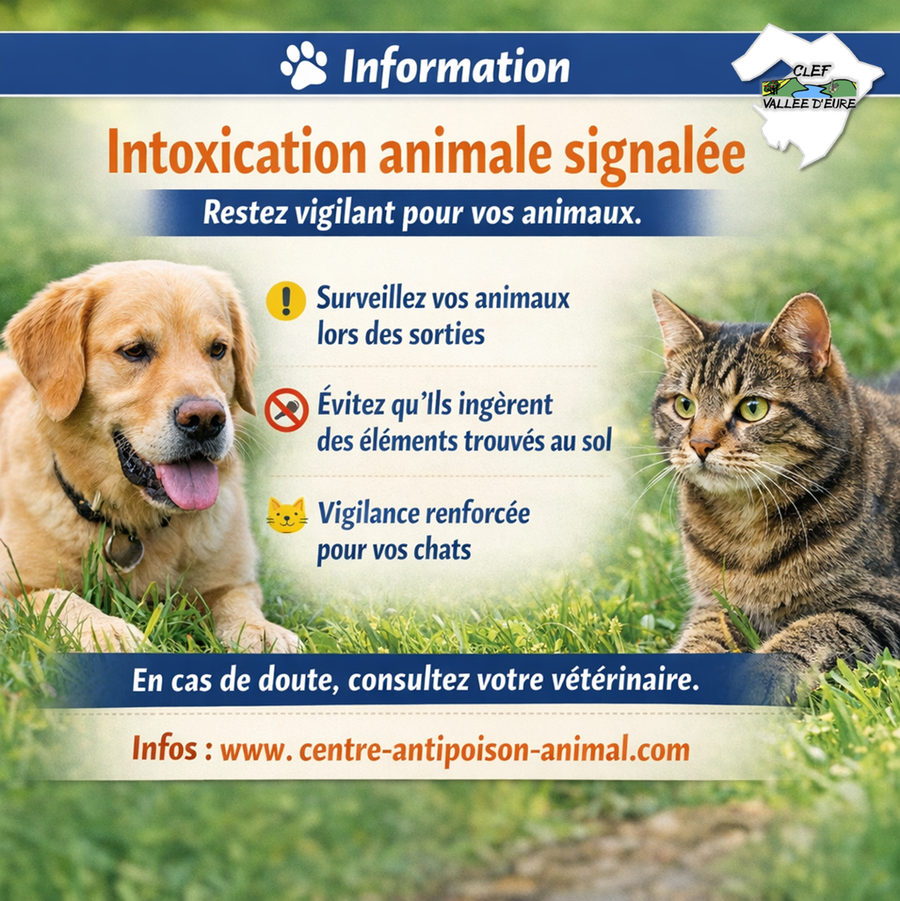 La commune souhaite informer les habitants qu’un cas récent d’intoxication d’un animal domestique a été constaté sur le secteur