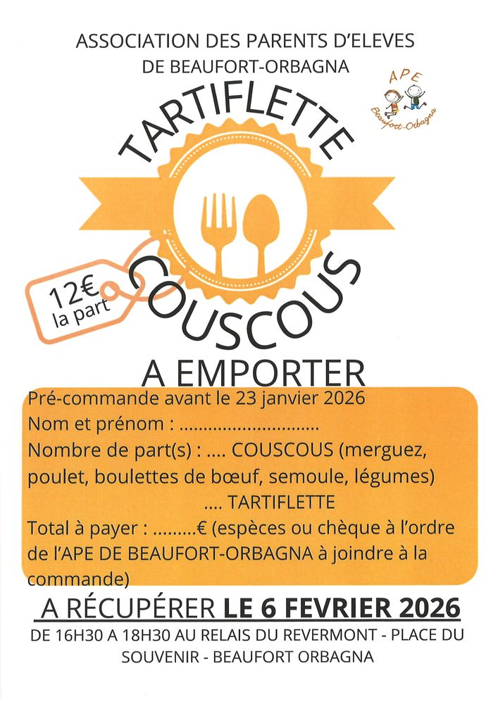 Commande de tartiflette et de couscous - APE