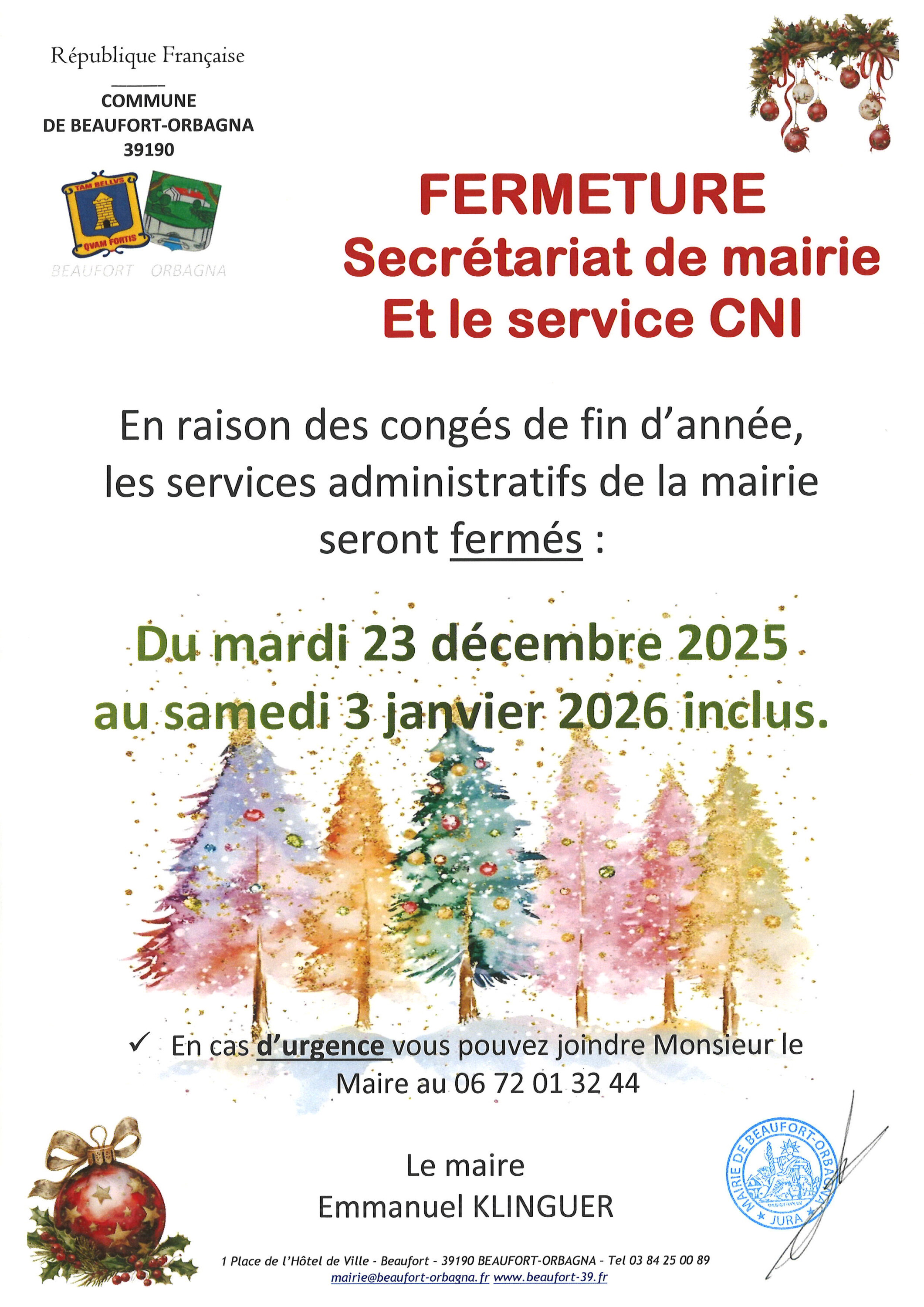 FERMETURE SECRETARIAT MAIRIE ET LE SERVICE CNI