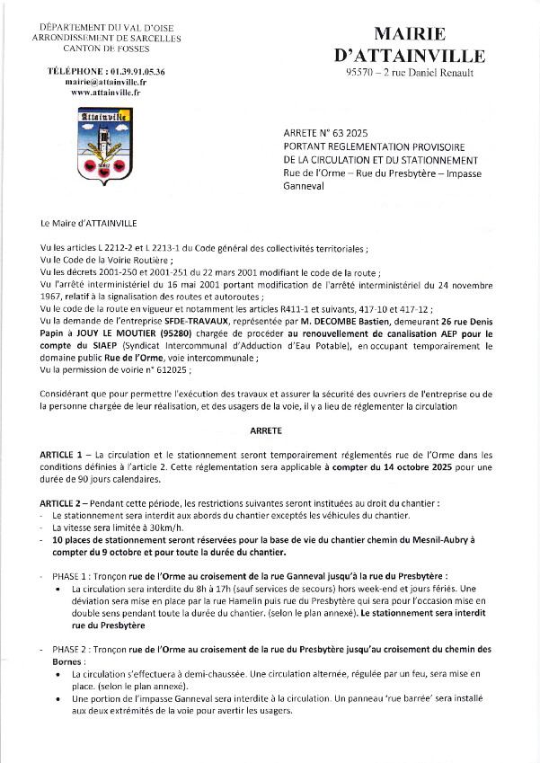 10 places de stationnement Chemin du Mesnil-Aubry seront réservées au personnel du chantier