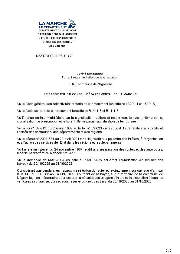 Interdiction circulation Pont de La Haye RD 146