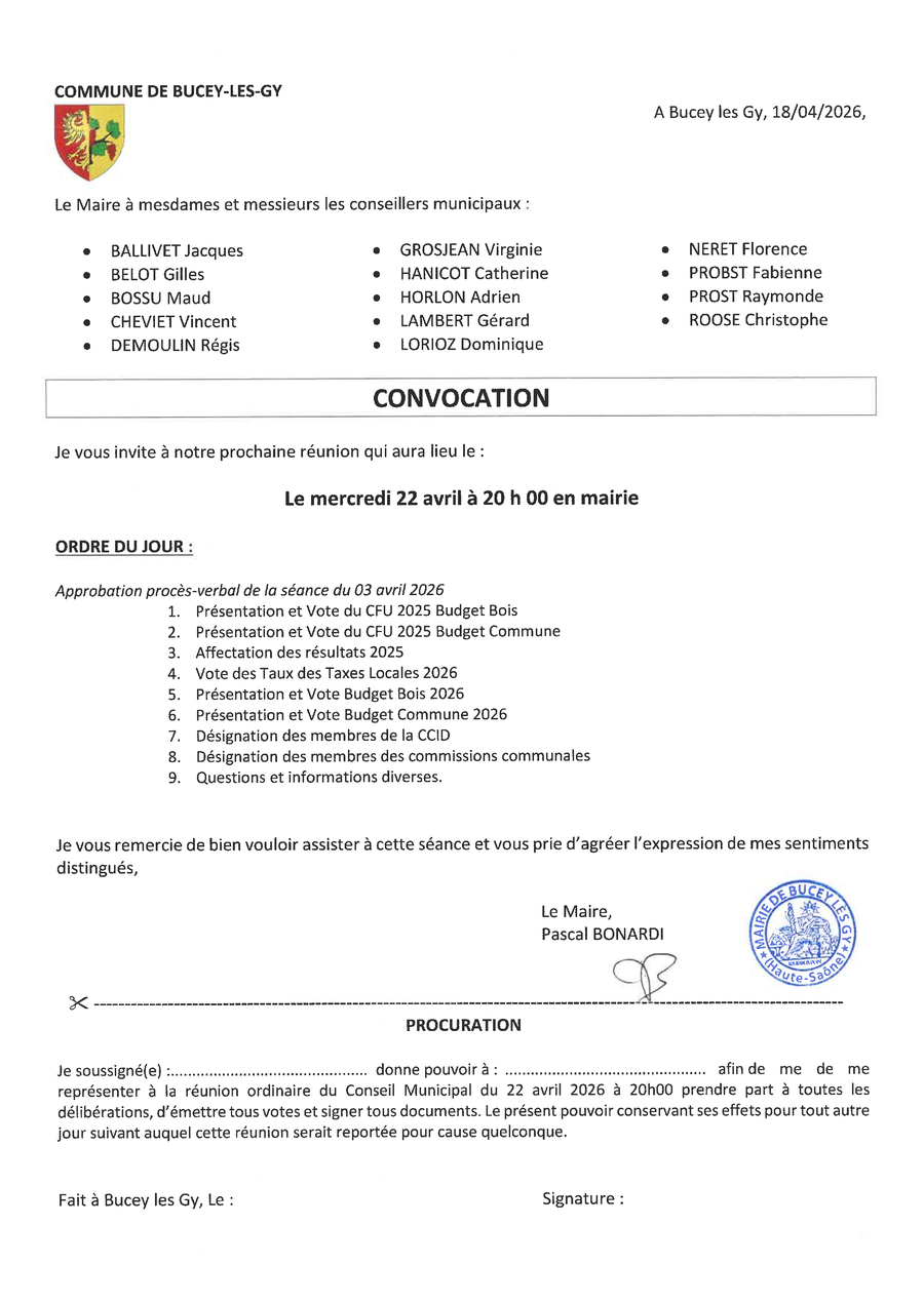 CONSEIL MUNICIPAL DU MERCREDI 22 AVRIL - 20H00