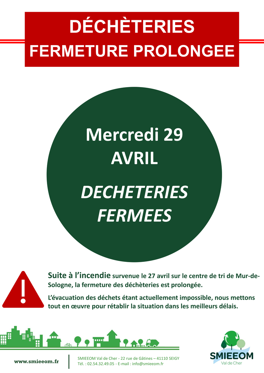 Fermeture prolongée déchèteries mercredi 29 avril
