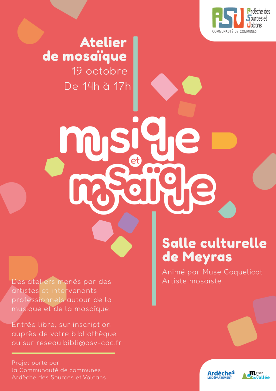 😀Venez réaliser un bout de fresque géante en mosaïque avec l'artiste Muse Coquelicot en partenariat avec la bibliothèque de Meyras