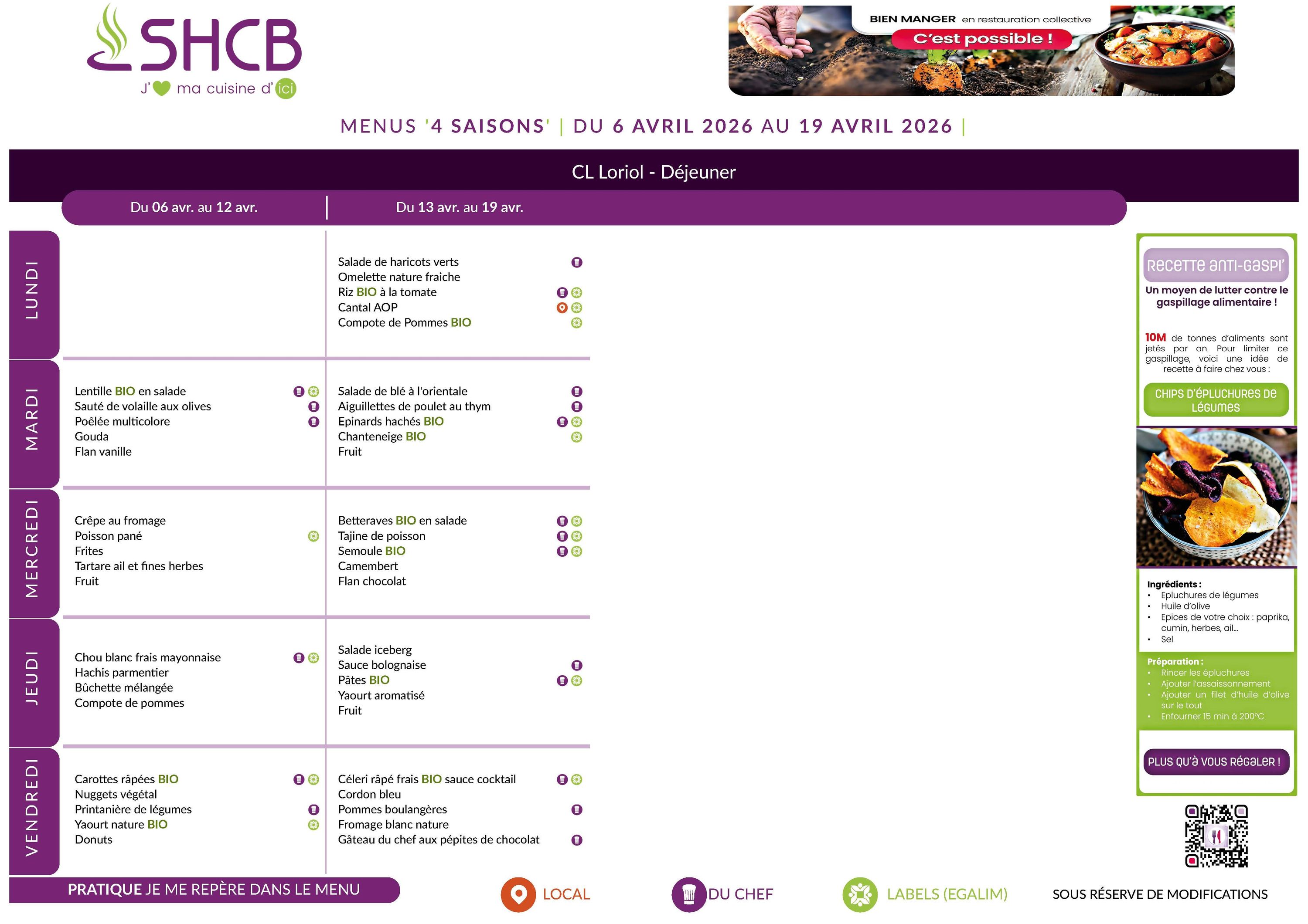 📅 Découvrez dès maintenant les menus de la cantine pour toute la période des vacances !