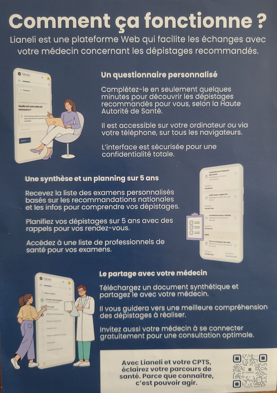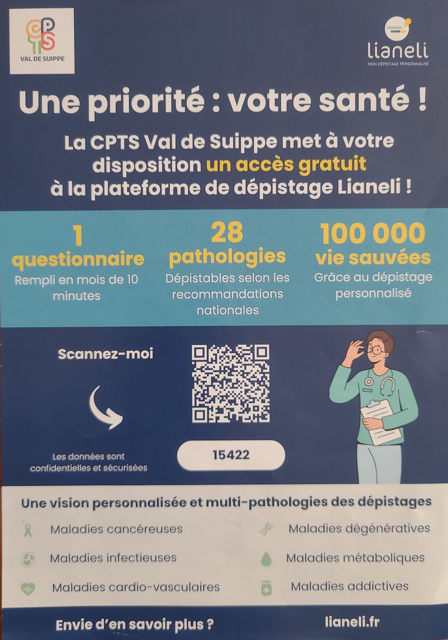 📣 La CPTS Val de Suippe met à votre disposition un accès gratuit à la plateforme de dépistage Lianeli.