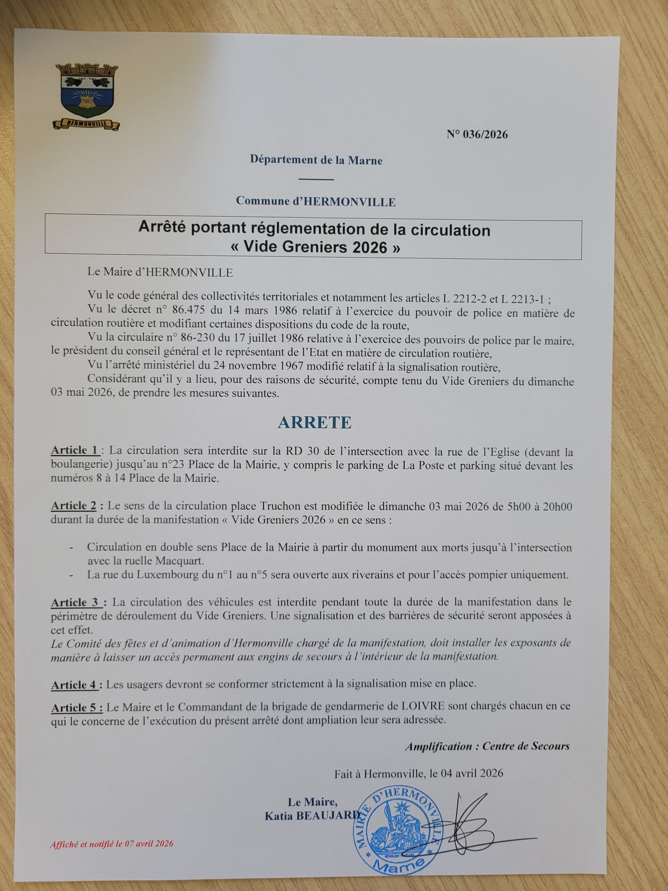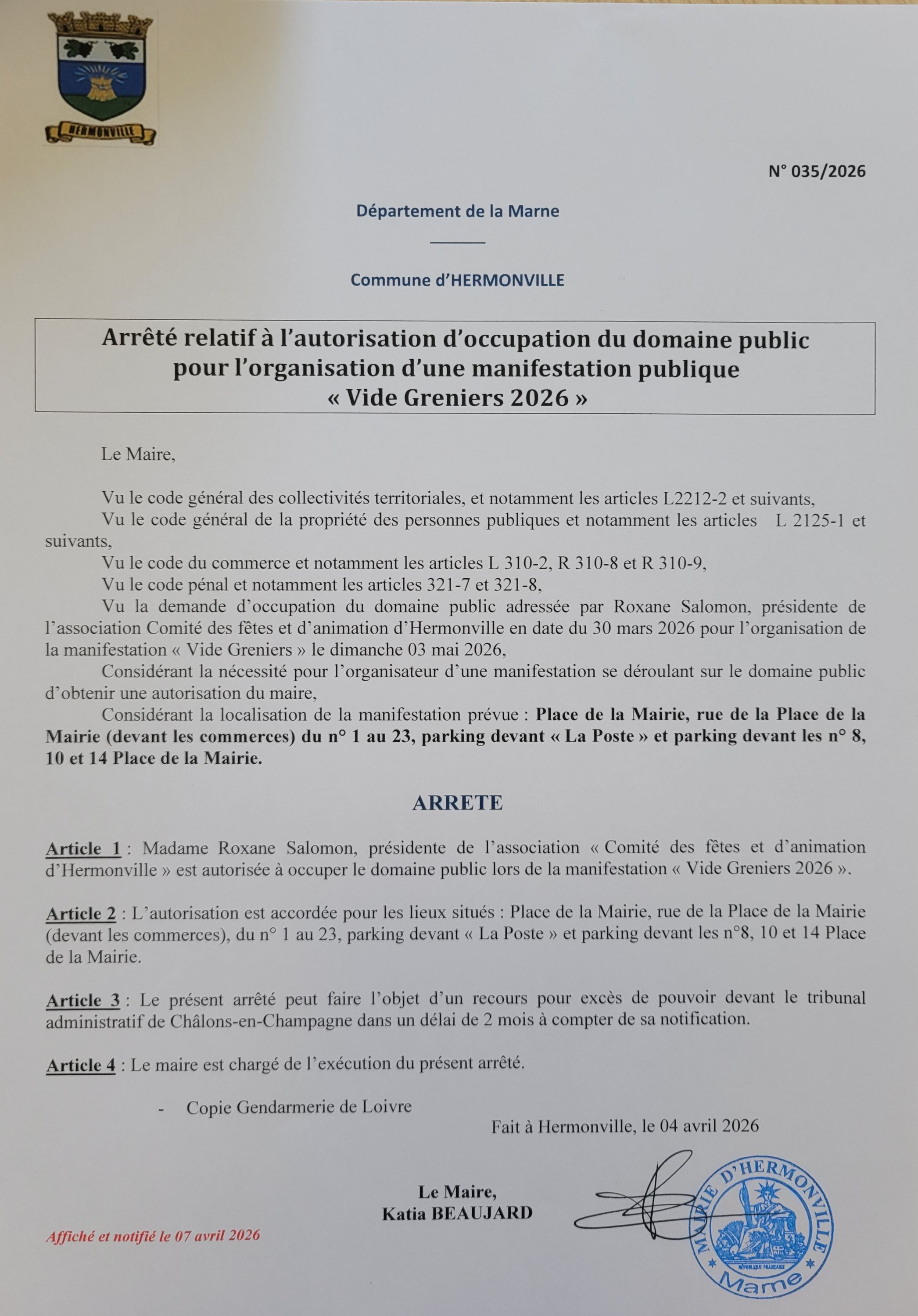 Dans le cadre du vide greniers du dimanche 3 mai 2026