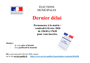 _ jusqu'au vendredi 06 février 2026 en mairie sur présentation: