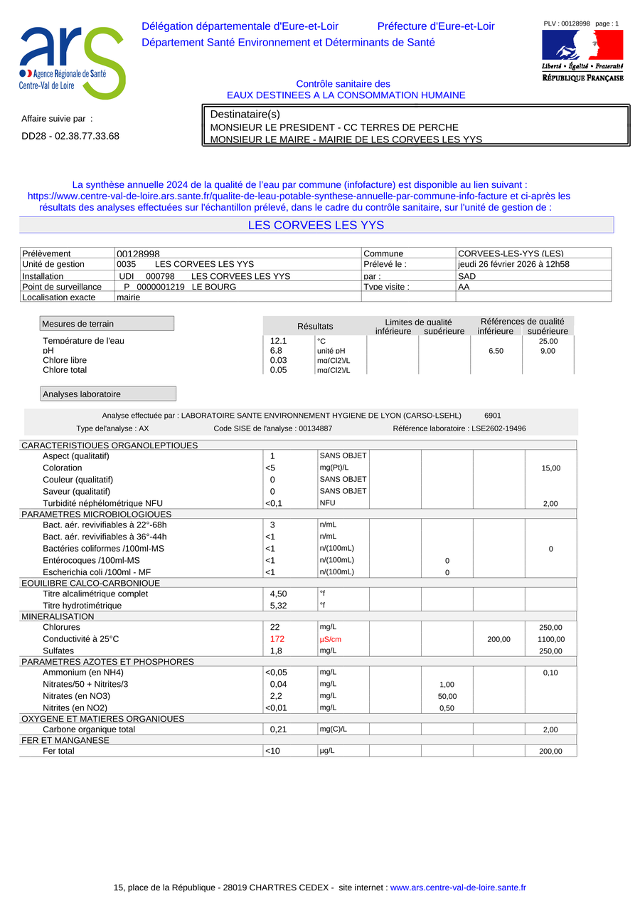 BULLETIN ANALYSES D'EAU