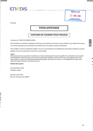 En raison de travaux sur le réseau électrique par Enedis, des coupures de courant sont prévues :