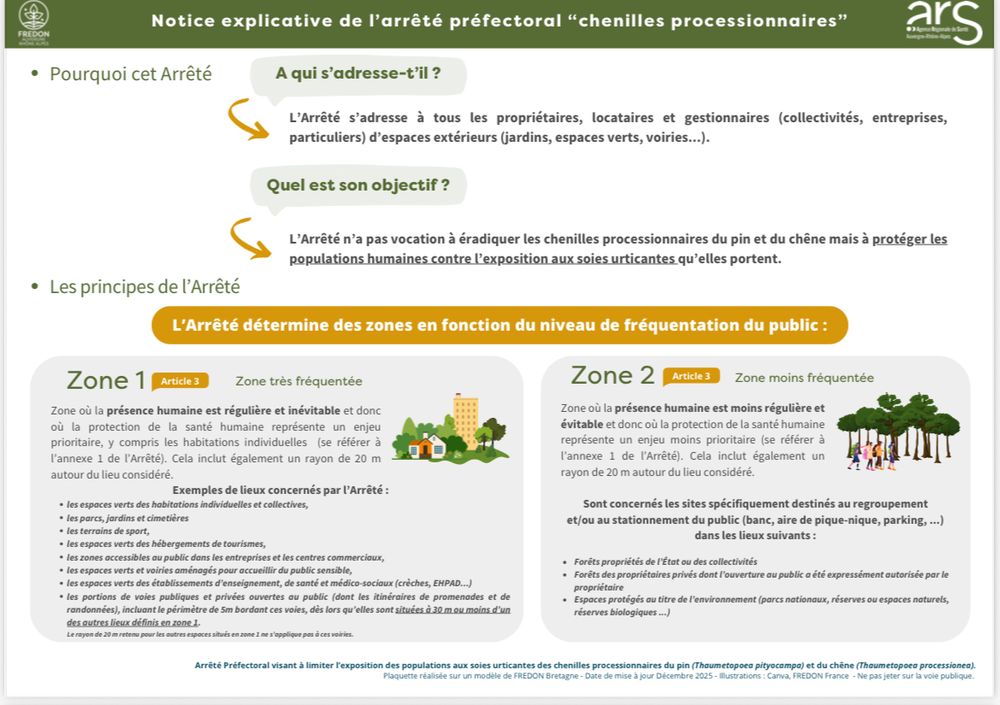 Cet arrêté précise les mesures de prévention et de gestion destinées à limiter les risques sanitaires liés à la présence de ces espèces, notamment en matière de surveillance, de signalement et d’intervention.