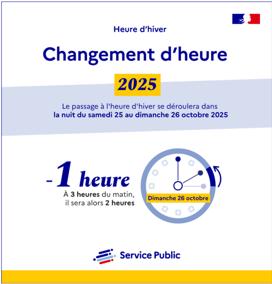 Le passage à l'heure d'hiver se déroulera dans la nuit du samedi 25 au dimanche 26 octobre 2025.