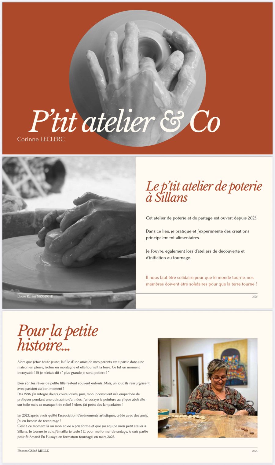 Corinne Leclerc vous accueille et vous propose des poteries uniques qu’elle réalise, mais également des ateliers collectifs d’initiation au tournage poterie.