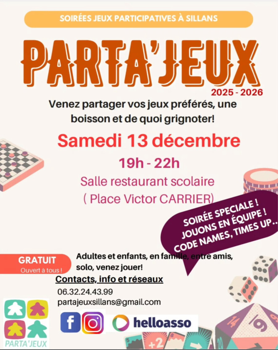 Soirée « jouons en équipe » Part’jeux 13 décembre