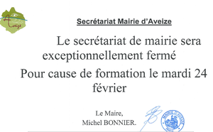 Fermeture Mairie : 31.01, 21.02, 24.02 et 07.03