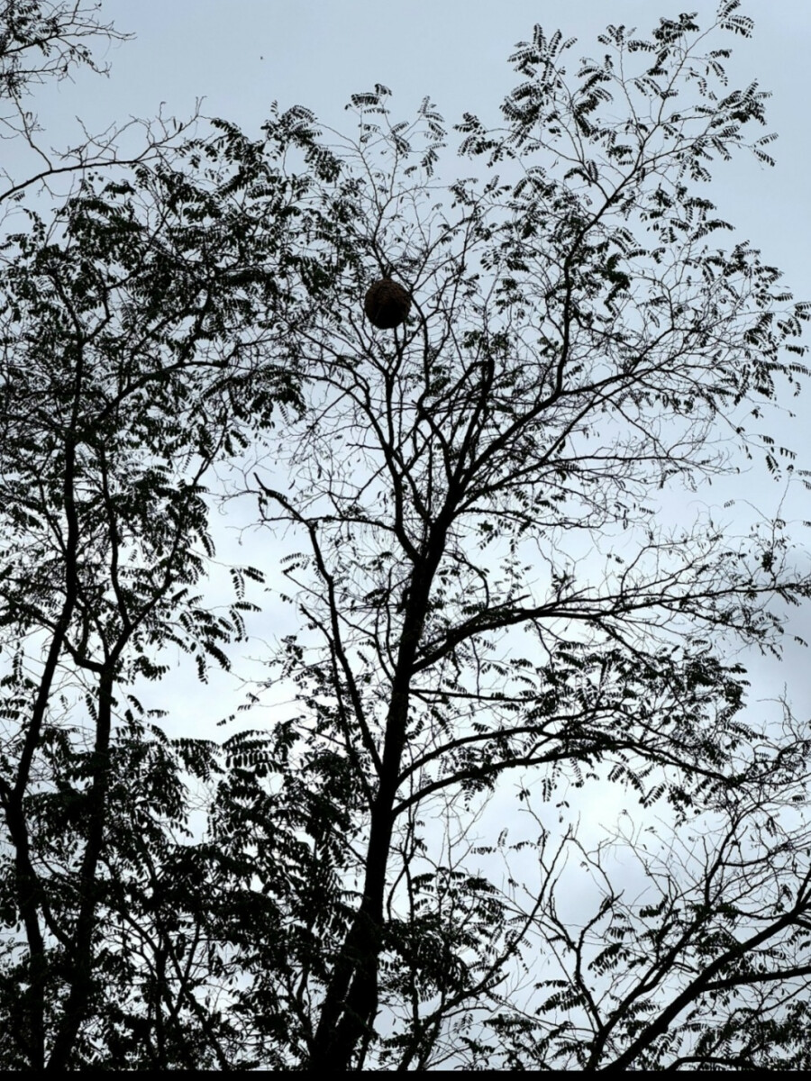 « Les feuilles commencent à tomber, nous découvrons des nids de frelons asiatiques (cf photo)!