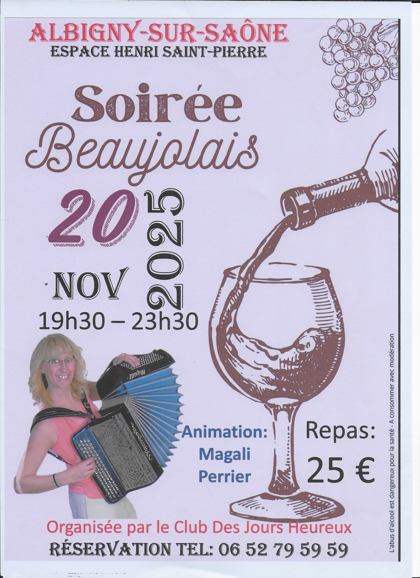 Le jeudi 20 novembre 2025, à partir de 19h30 au gymnase de l'EHSP, venez partager un moment convivial autour du Beaujolais !