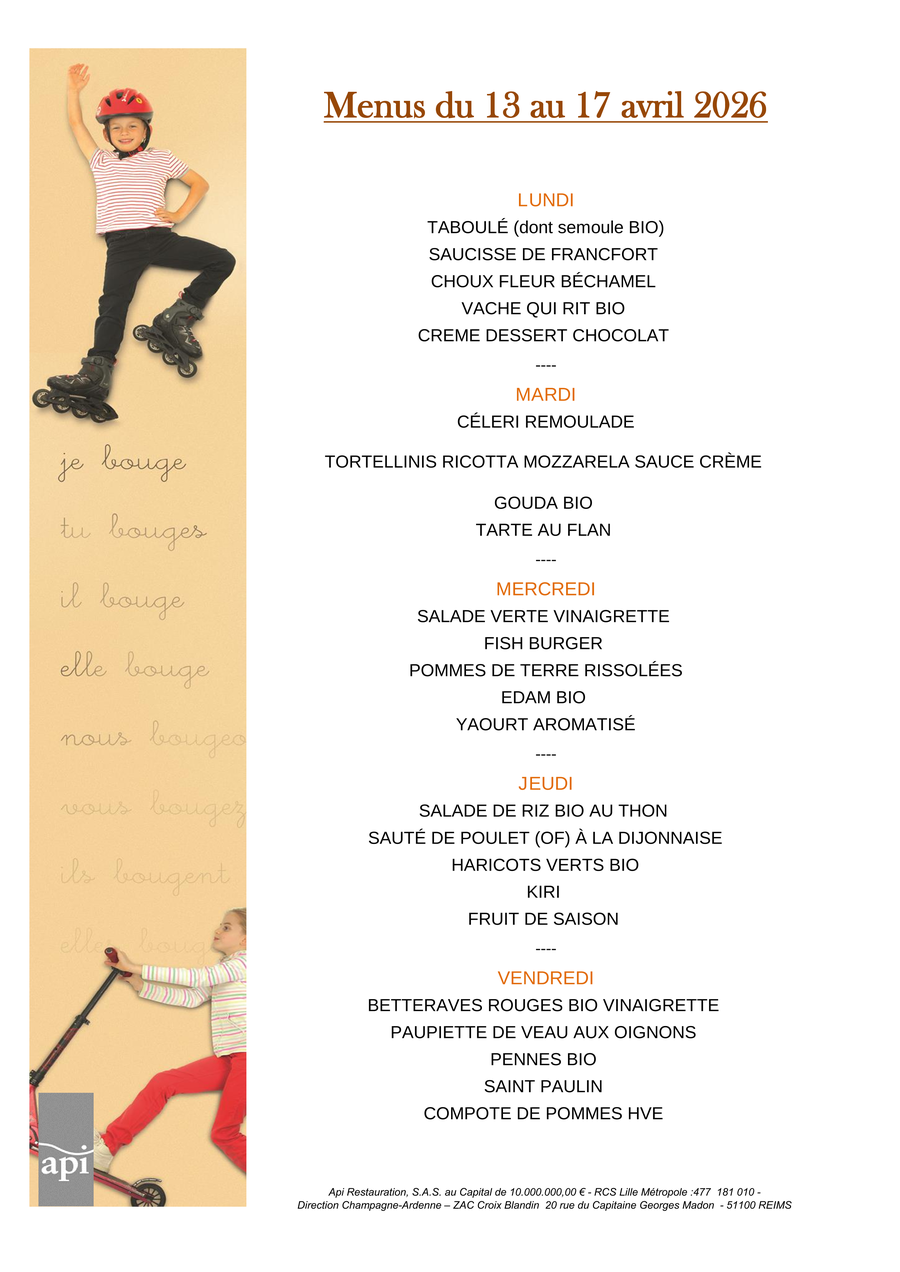 MENUS VACANCES SCOLAIRE
