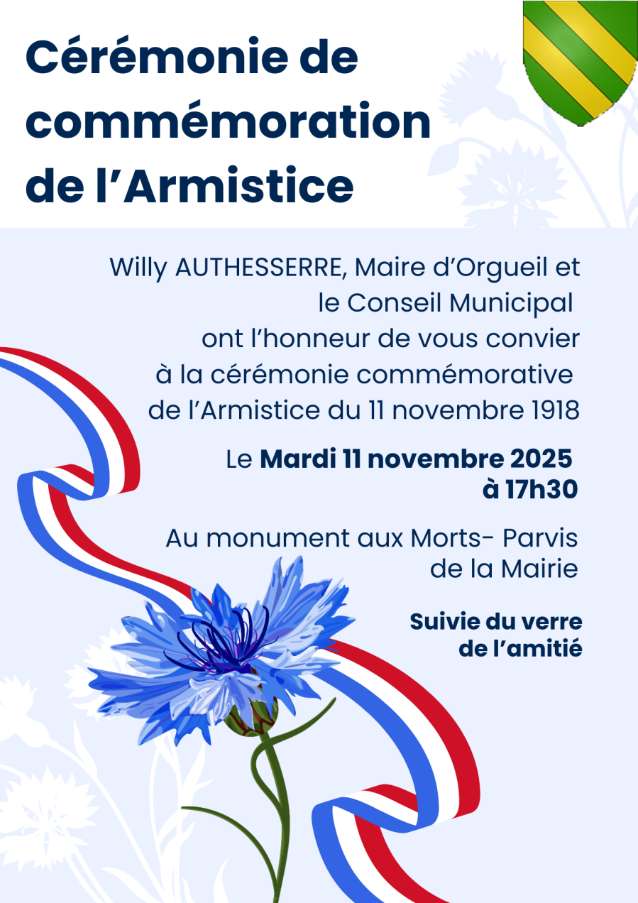 ont l'honneur de vous convier à la cérémonie commémorative de l'Armistice du 11 Novembre 1918