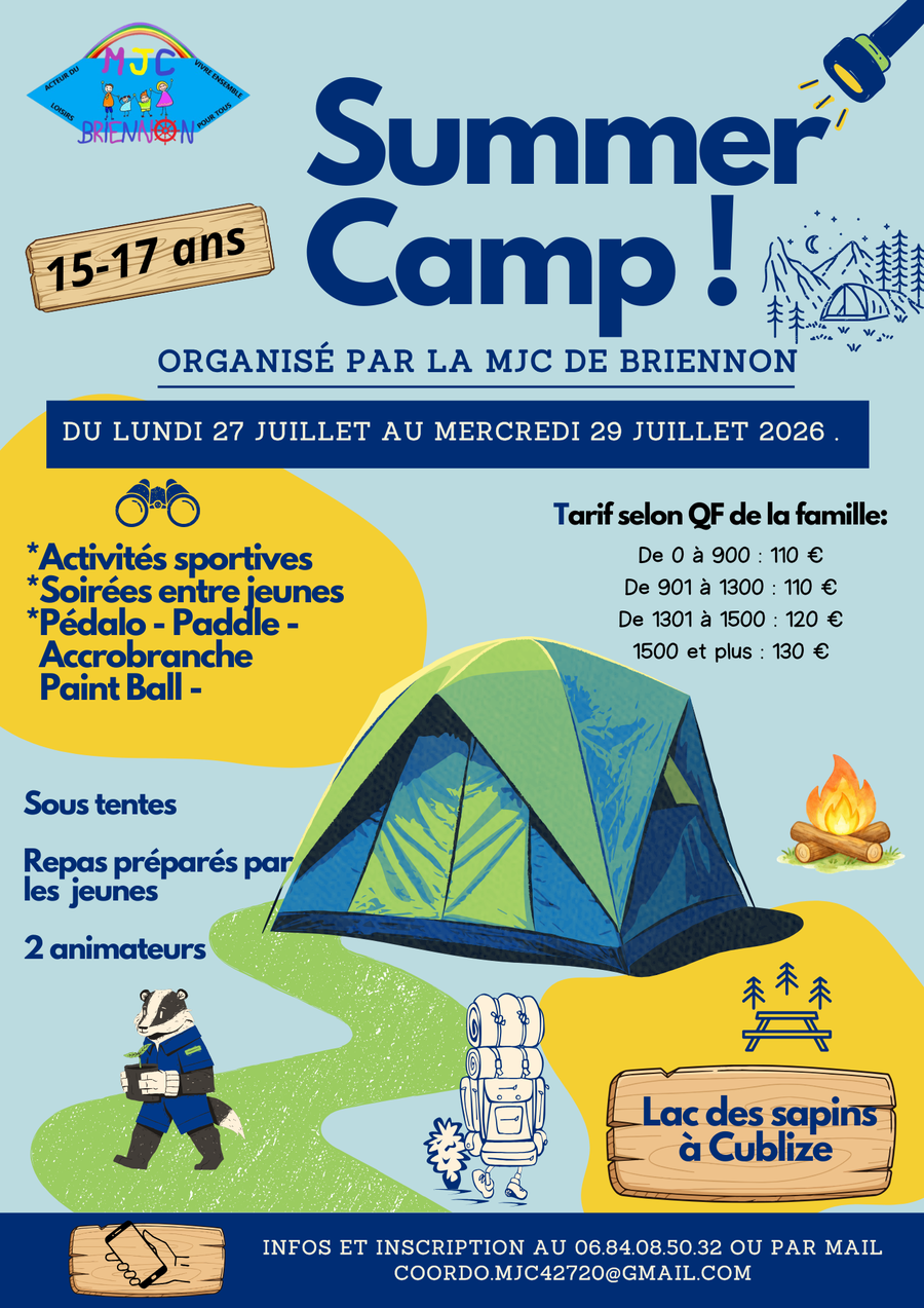La MJC propose cette année un camp de 3 jours pour les grands, les 15-17 ans à Cublize.