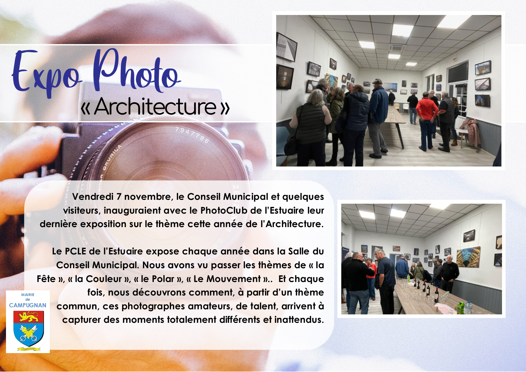Vendredi 7 novembre, le Conseil Municipal et quelques visiteurs, inauguraient avec le PhotoClub de l’Estuaire leur dernière exposition sur le thème cette année de l’Architecture.