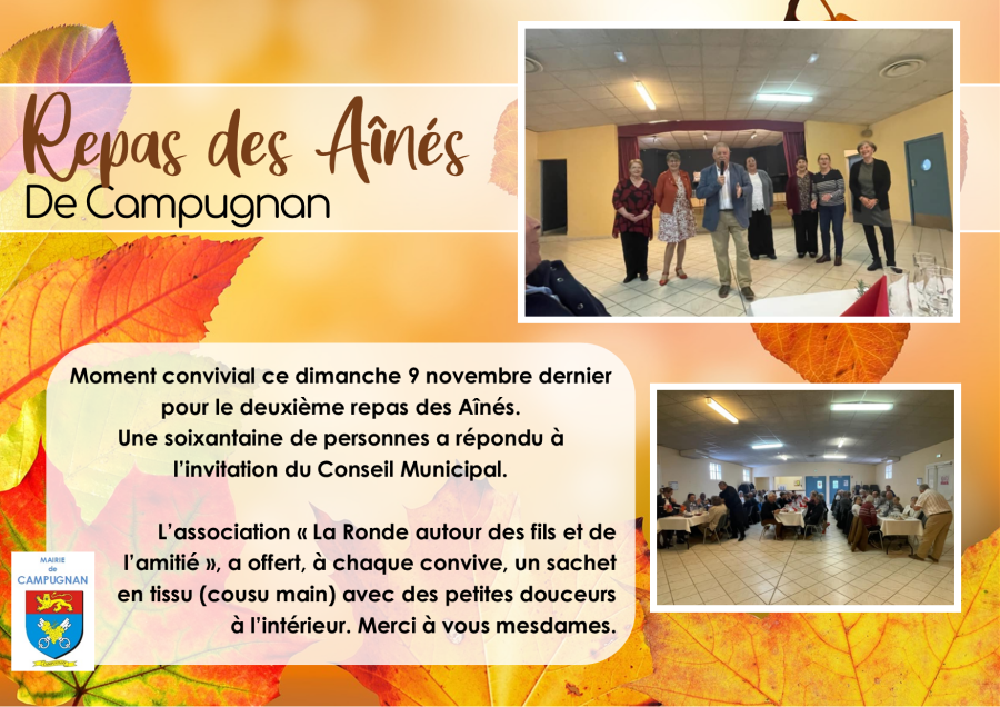 Moment convivial ce dimanche 9 novembre dernier pour le deuxième repas des Aînés.