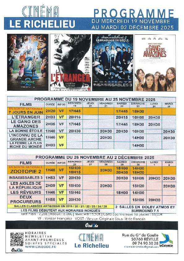 PROGRAMME DU CINEMA "LE RICHELIEU"