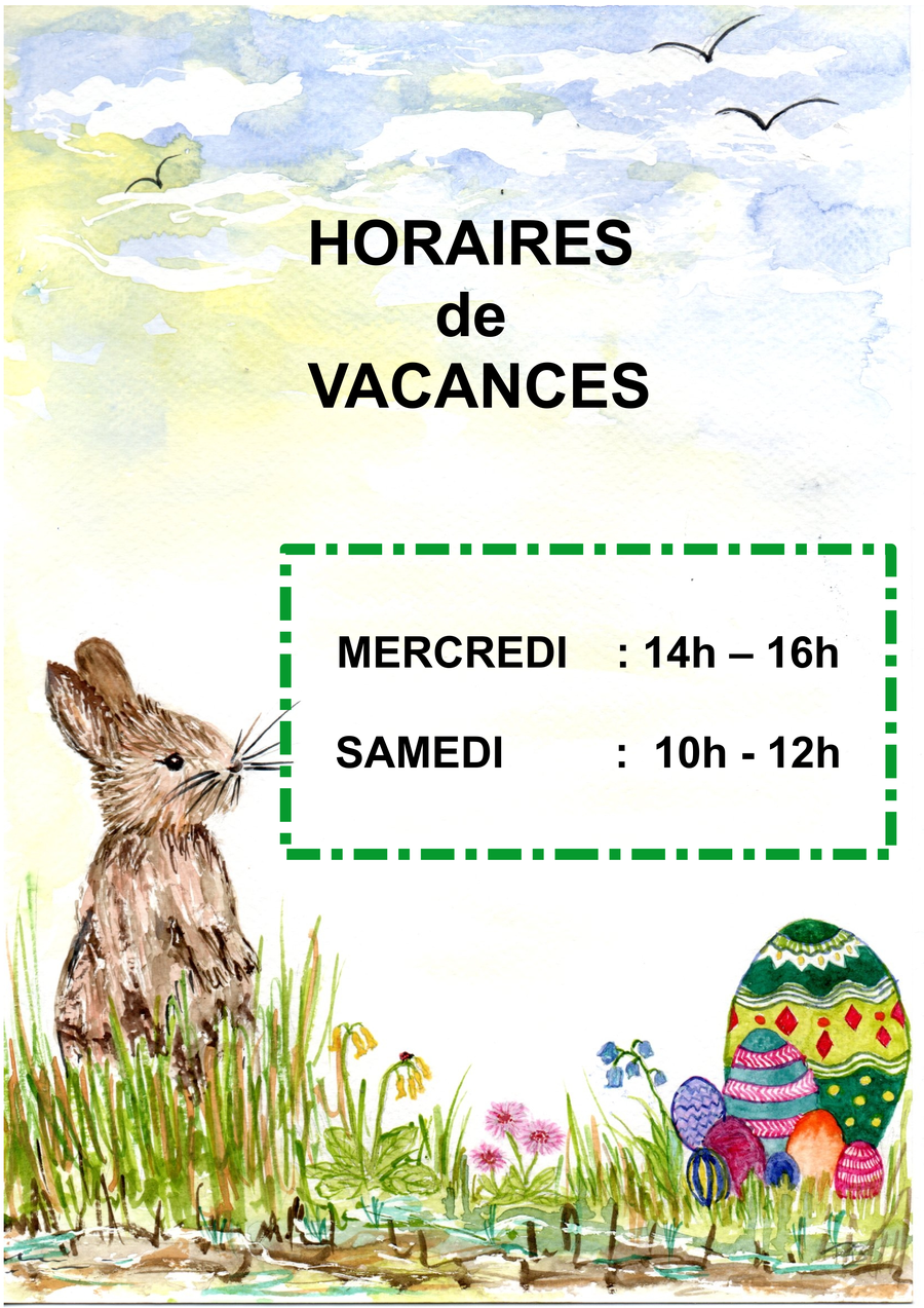 À l’occasion des vacances de Pâques, les horaires de la bibliothèque sont modifiés