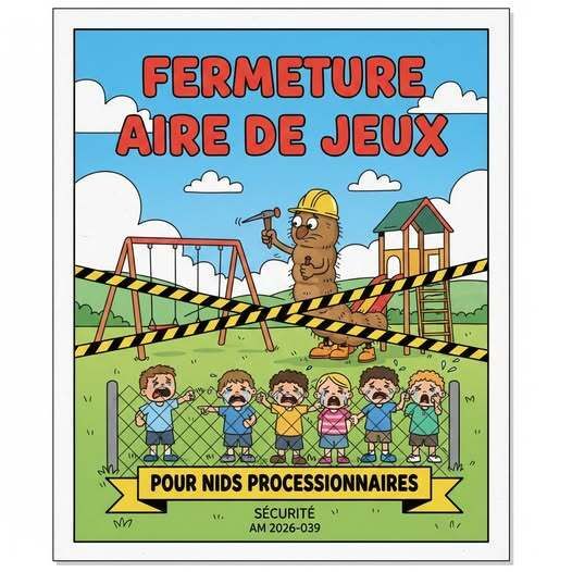Pour la sécurité de vos enfants et de vos animaux (attention aux poils urticants !), l’accès à l'aire de jeux est temporairement fermé.