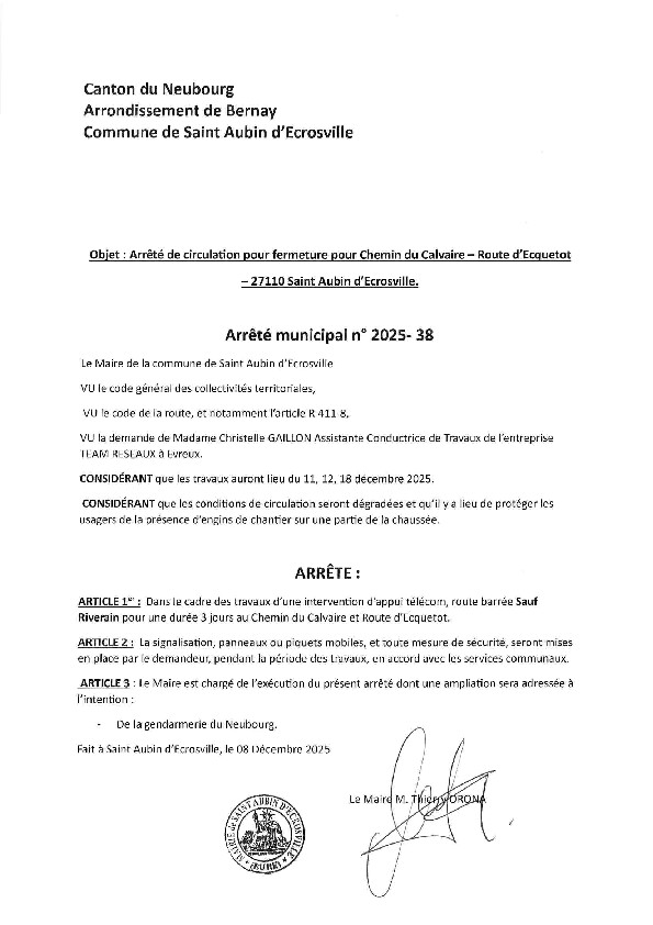 ARRETE DE CIRCULATION