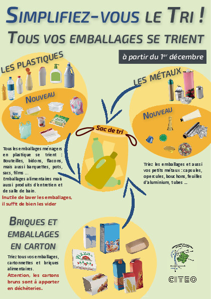 Une opération de distribution de sacs de tri sera organisée à la Mairie (entrée A) et au Centre Culturel le