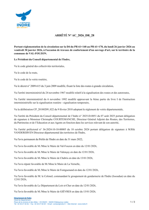 ARRÊTÉ DE CIRCULATION RD4 AVEC PLAN DE DEVIATION DU 26/01/2026 AU 30/01/2026