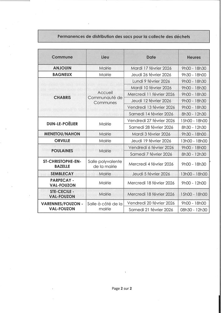 ♻️ Distribution de sacs – Permanences Val-Fouzon