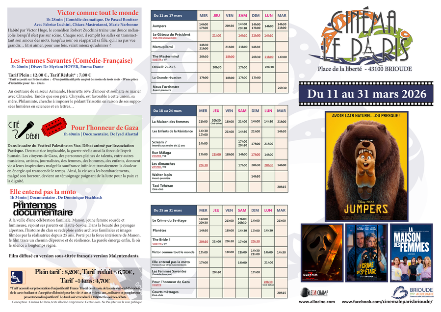 Programme Cinéma Le Paris 🎬️