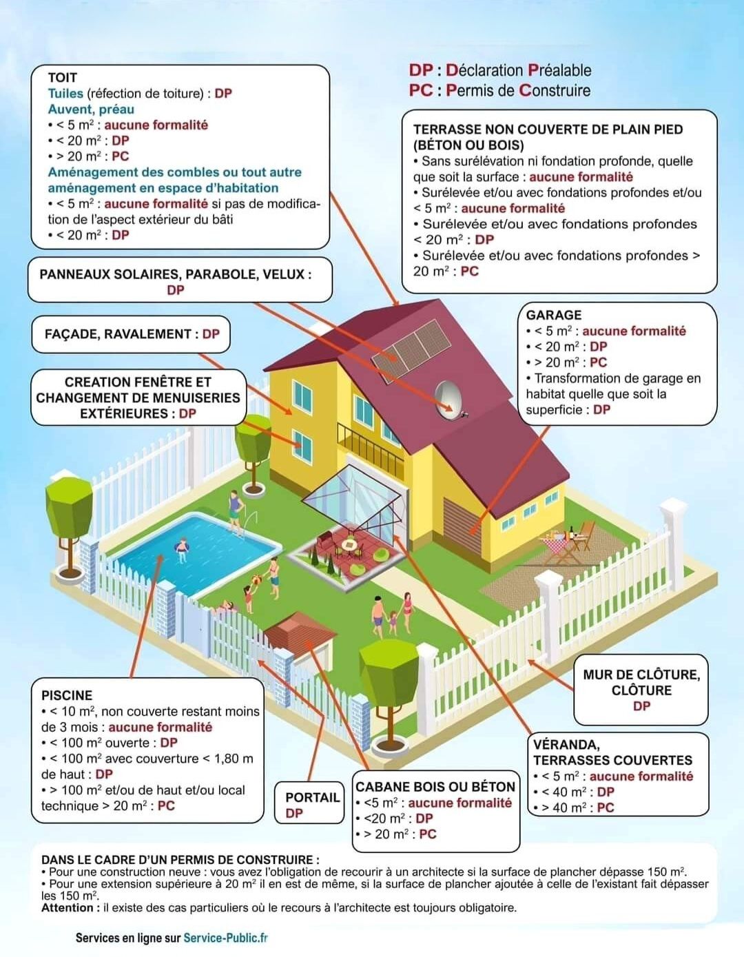 L'illustration ci-dessous liste les différents types de demandes à effectuer en fonction des travaux prévus.